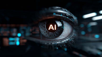 Futuristic human eye with digital interface and technology concept of cyber vision and artificial intelligence