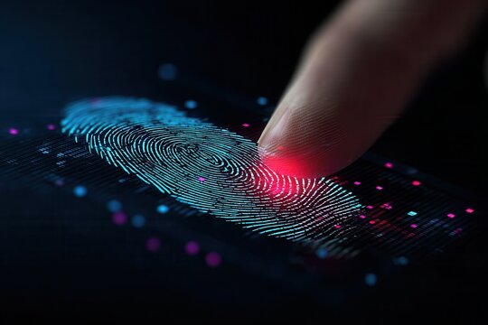 Technology and Security Combine as a Finger Touches a Fingerprint Scanner on a Digital Surface