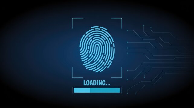 Glowing blue fingerprint scan on digital interface