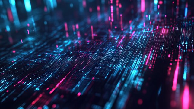Futuristic digital interface with neon blue and purple data streams