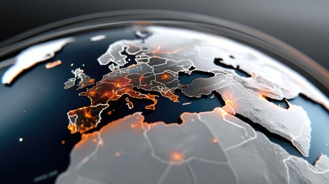 Futuristic digital interface with global data connectivity