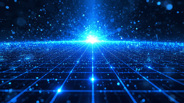 Bluetechgridwithglowinglightrays