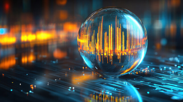 Dynamic sound waves visualization in digital sphere futuristic environment tech concept
