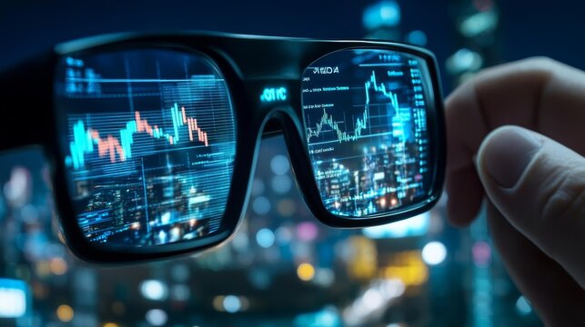 vibrant display of financial data analytics, with various types of graphs and numerical data overlaid on a digital interface or motherboard