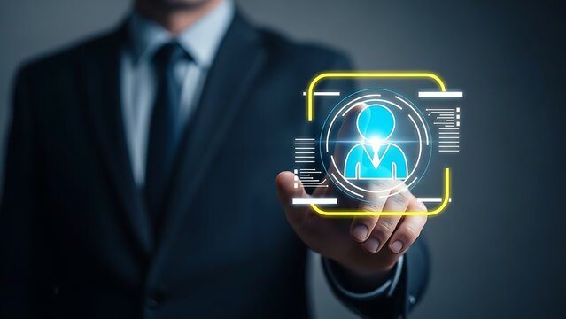 Businessman Interacting with AI Agents Digital Interface and Fingerprint