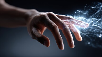 Hand Reaching Toward Electric Energy in Futuristic Scene