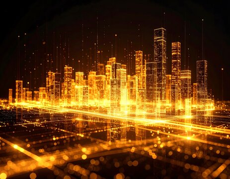 Futuristic city skyline with glowing digital network