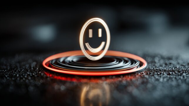 Futuristic neon soundwave and radio signal icon glowing on dark tech surface with digital effects