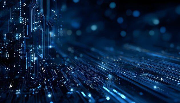 High-tech circuit board background, abstract digitaltechnology presentations, lectronic components, digial infrastructure, blue teh theme, modern electronic evolution expansion backgound image