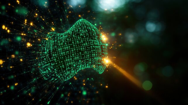 Futuristic digital interface with binary code patterns