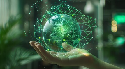 Futuristic digital interface with green hud elements