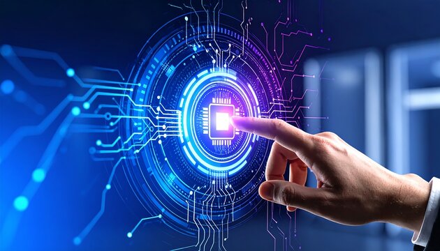 Futuristic Digital Interface With Microprocessor Overlay Images