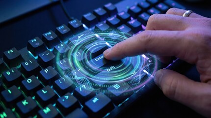 Futuristic Finger Pressing Enter Key. Ai generation