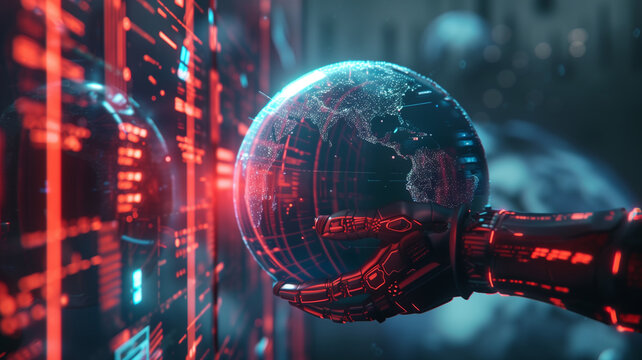 Futuristic Digital Interface With Red Globe Display Images