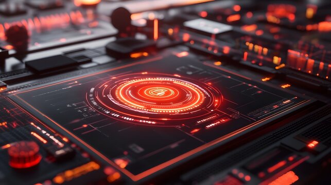 Abstract Futuristic Technology Interface with Red Glowing Elements