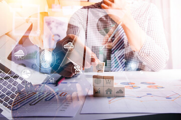 Futuristic digital interfaces with data visualizations