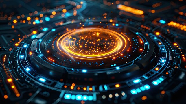 Futuristic digital interface with vibrant circle display