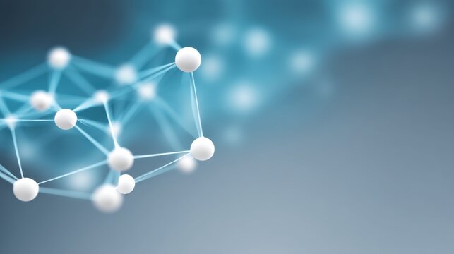 Abstract representation of interconnected nodes and spheres illustrating concepts of technology, networks, and data flow in a modern digital design