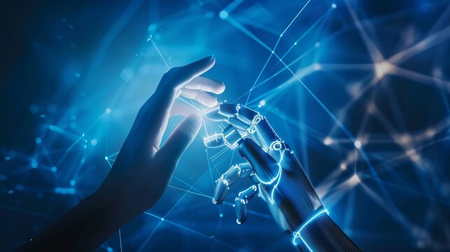 Hand interacting with virtual cloud data stream digital environment technology concept futuristic viewpoint