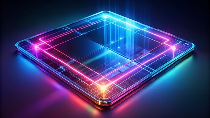 Futuristic digital interface display with neon visuals