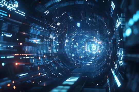 Futuristic Digital Tunnel Data Stream Visualization