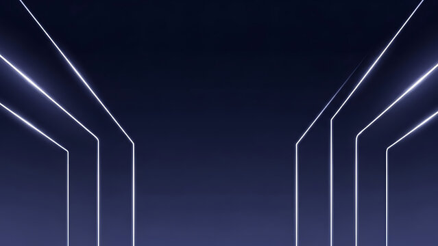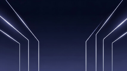 Futuristic abstract background with glowing white symmetrical lines on a deep blue canvas, evoking digital networks, data flow, and technological connections for modern graphic designs