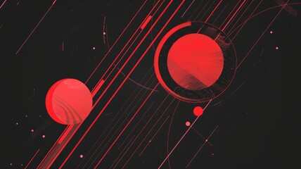 Futuristic red and black circular interface design. Digital artwork of abstract image of red circle and curve lines with black background. Sci-fi technology concept for wallpapers and prints. AIG53F.