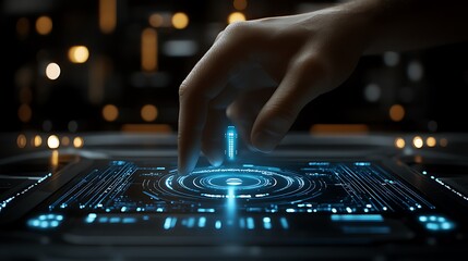 Technological interface design with blue glow and circular pattern for digital graphics
