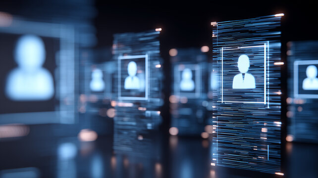 Digital human profile icons displayed in a futuristic data interface representing user data management digital identity and information systems.