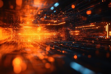 Vibrant digital landscape with glowing orange lines and patterns creating a futuristic environment