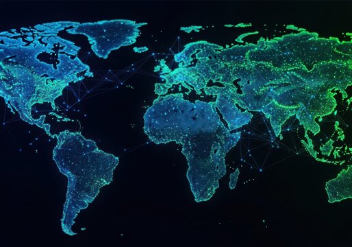 Digital Global Map Visualization with Network Connections and Futuristic Data Interface