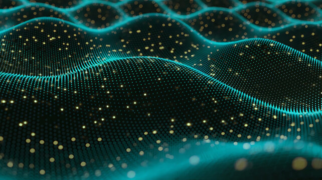 Abstract Wavy Background with Glowing Particles Digital Art and Modern Technology Concept