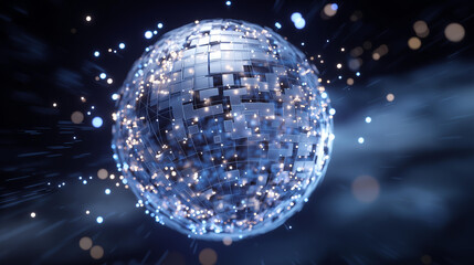 Glowing network sphere in cosmic void representing futuristic digital technology