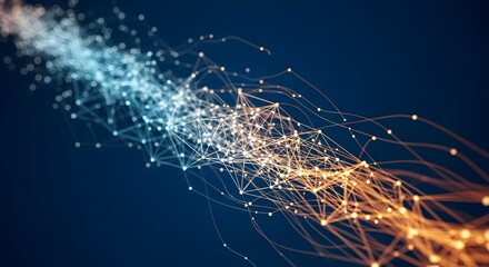 Abstract visualization of a complex digital network with glowing nodes and interconnected data streams.