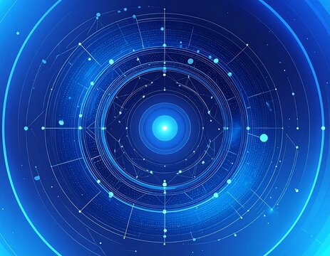 Futuristic blue background with glowing lines and dots, depicting digital connectivity and data transfer in a global network