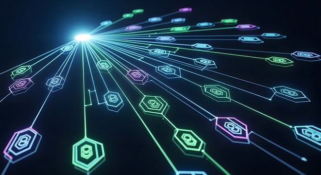 Abstract visualization of a glowing central node connected to a network of smaller nodes, representing data flow and interconnectedness.