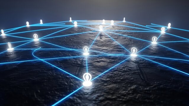 This image depicts a digital network with interconnected nodes and lines, representing communication and connectivity in a modern, technological world.
