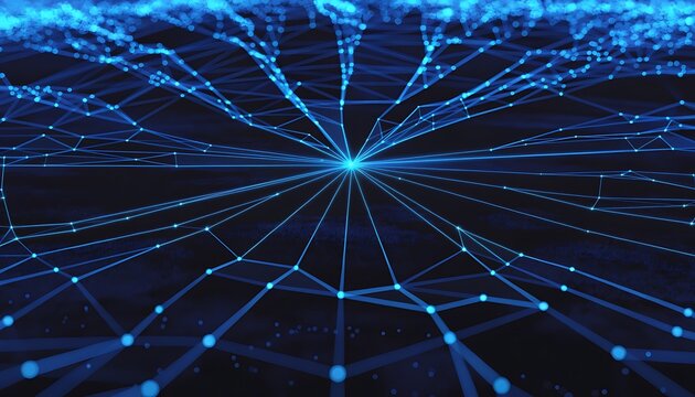 Futuristic digital network visualization with blue background