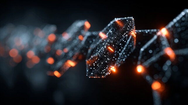 Futuristic digital mesh with glowing nodes in cosmic environment