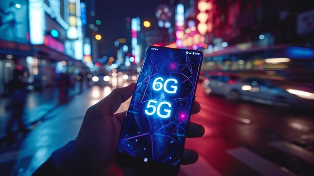 6g technology graphic with person using smartphone