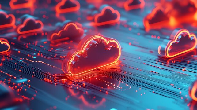 Futuristic Digital Network With Abstract Code And Cloud Elements Images