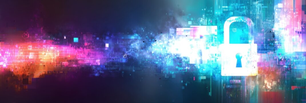A futuristic abstract background with digital elements and padlock symbols, representing the concept of security in technology Generative AI