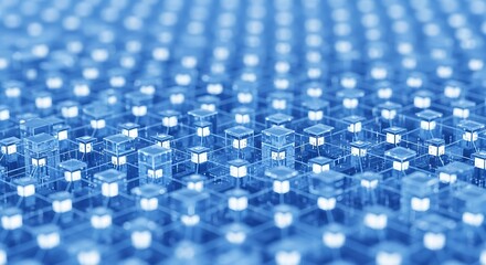 Digital blue circuit board pattern with glowing nodes on dark background. Abstract technology network concept. Data flow visualization for ai and cybersecurity business