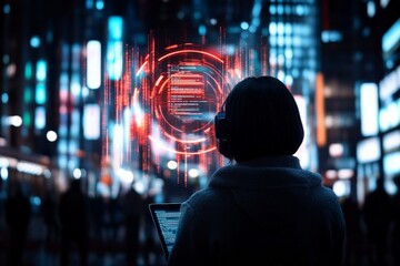 Cityscape with Red Digital Overlay