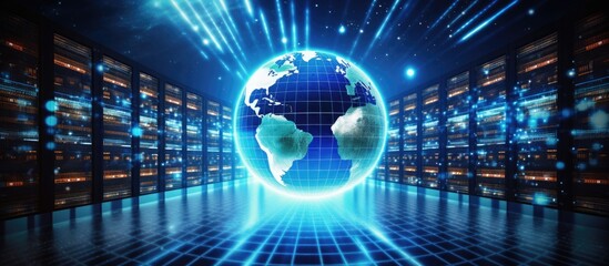 Global networking and digital technology concept with abstract earth and communication elements in space