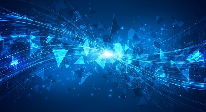 A dynamic, abstract design showcases interconnected shapes and glowing lines, creating a captivating futuristic visual.