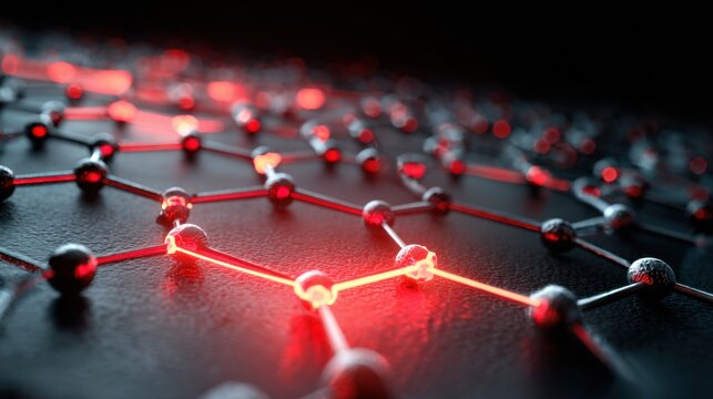 Futuristic hexagonal grid with glowing blue connections and data visualization lines on a dark background representing technology and network concepts