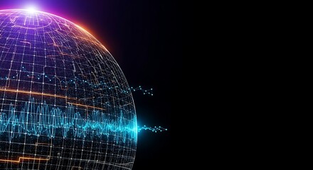 Global Network Data Visualization: Abstract Sphere with Glowing Lines and Data Waves, Futuristic Technology Concept
