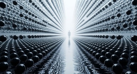 Futuristic digital corridor with abstract geometric patterns