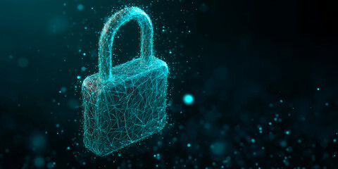Futuristic digital security concept with padlock overlay